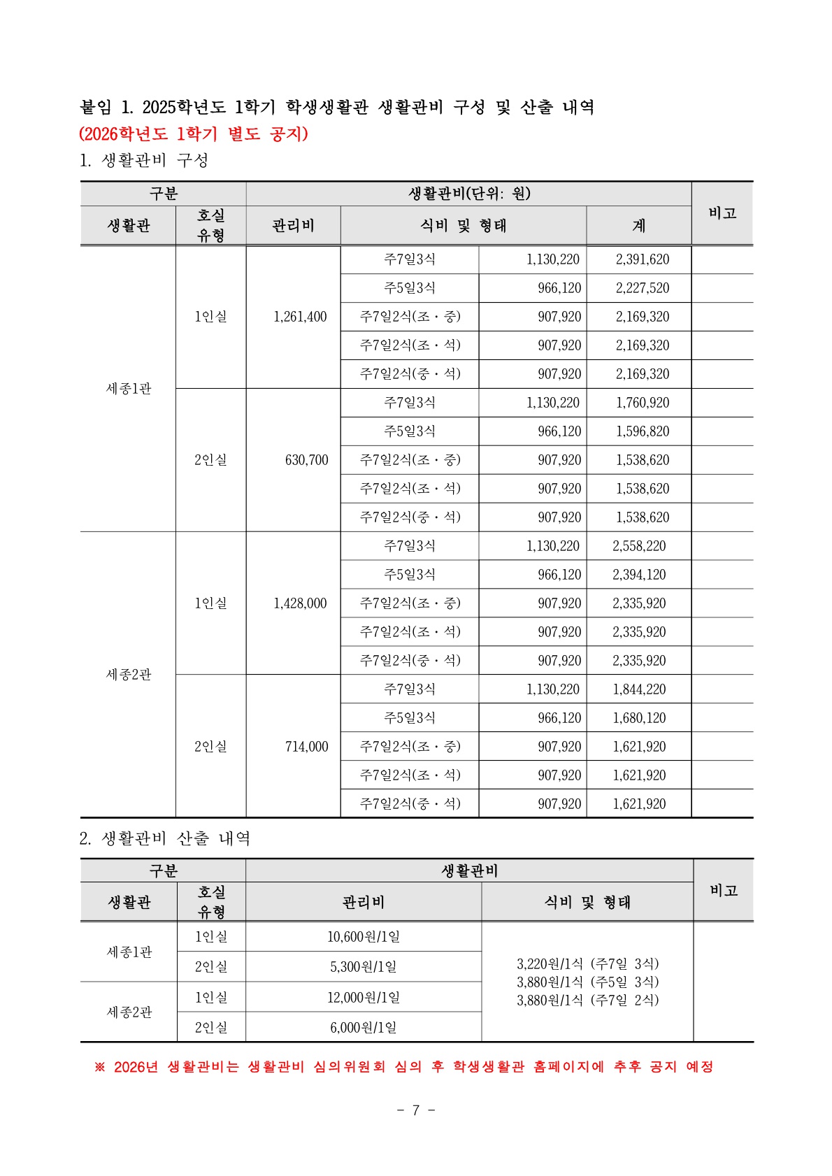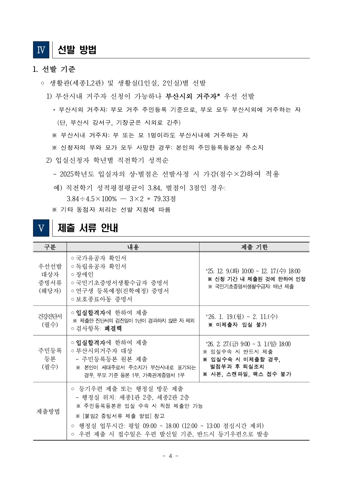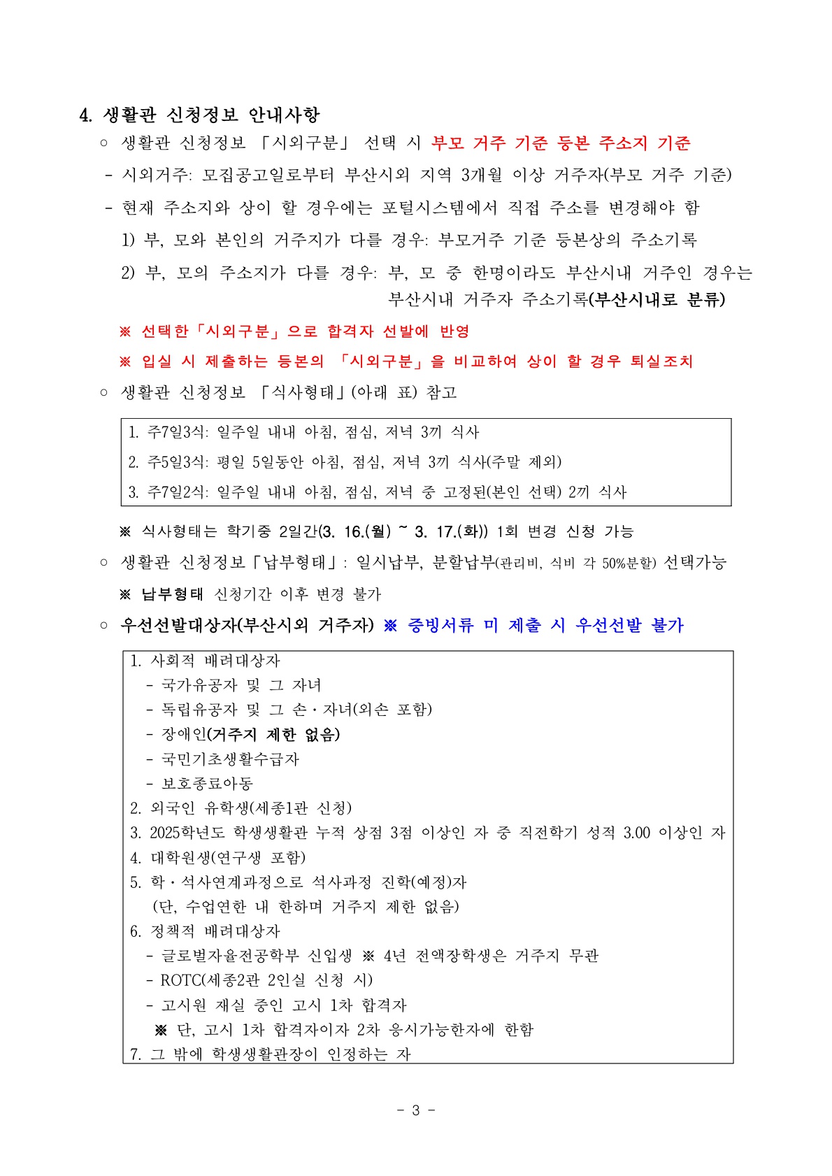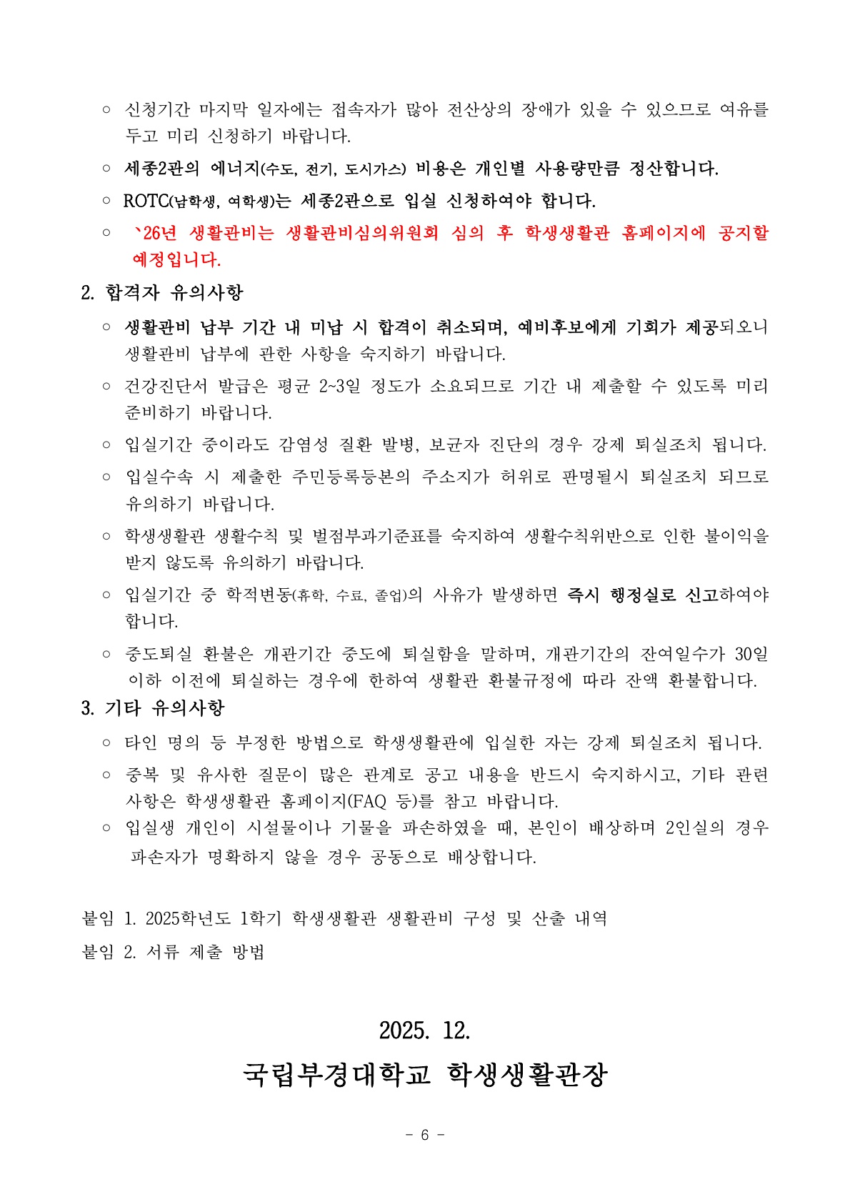 2026학년도 1학기 학생생활관 입실생(재학생 및 복학예정자) 모집 안내