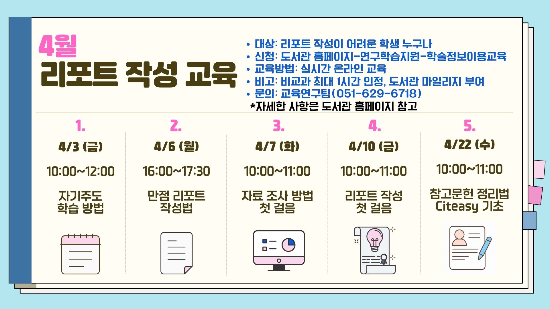 [도서관] 4월 리포트 작성 온라인 교육 안내