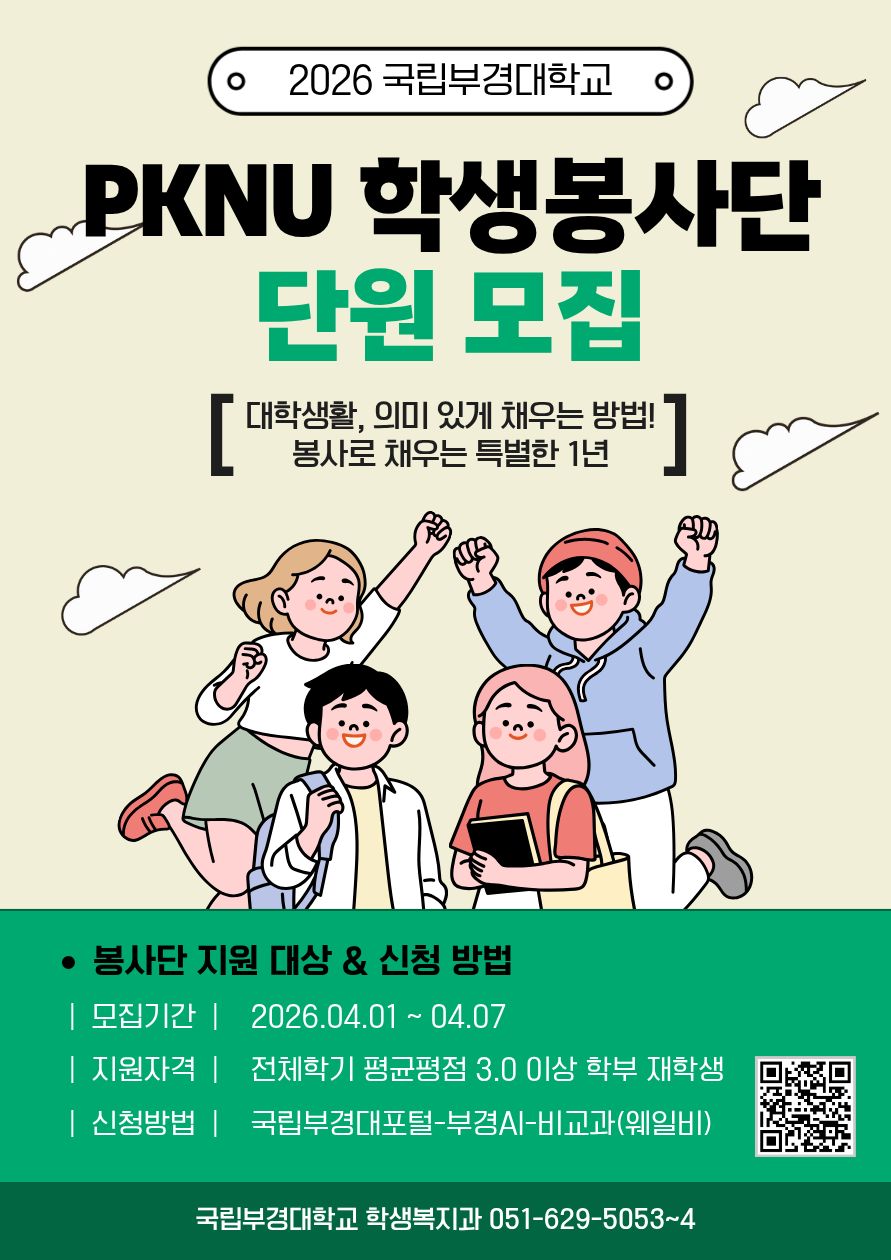 2026학년도 PKNU 학생봉사단 봉사단원 모집 안내