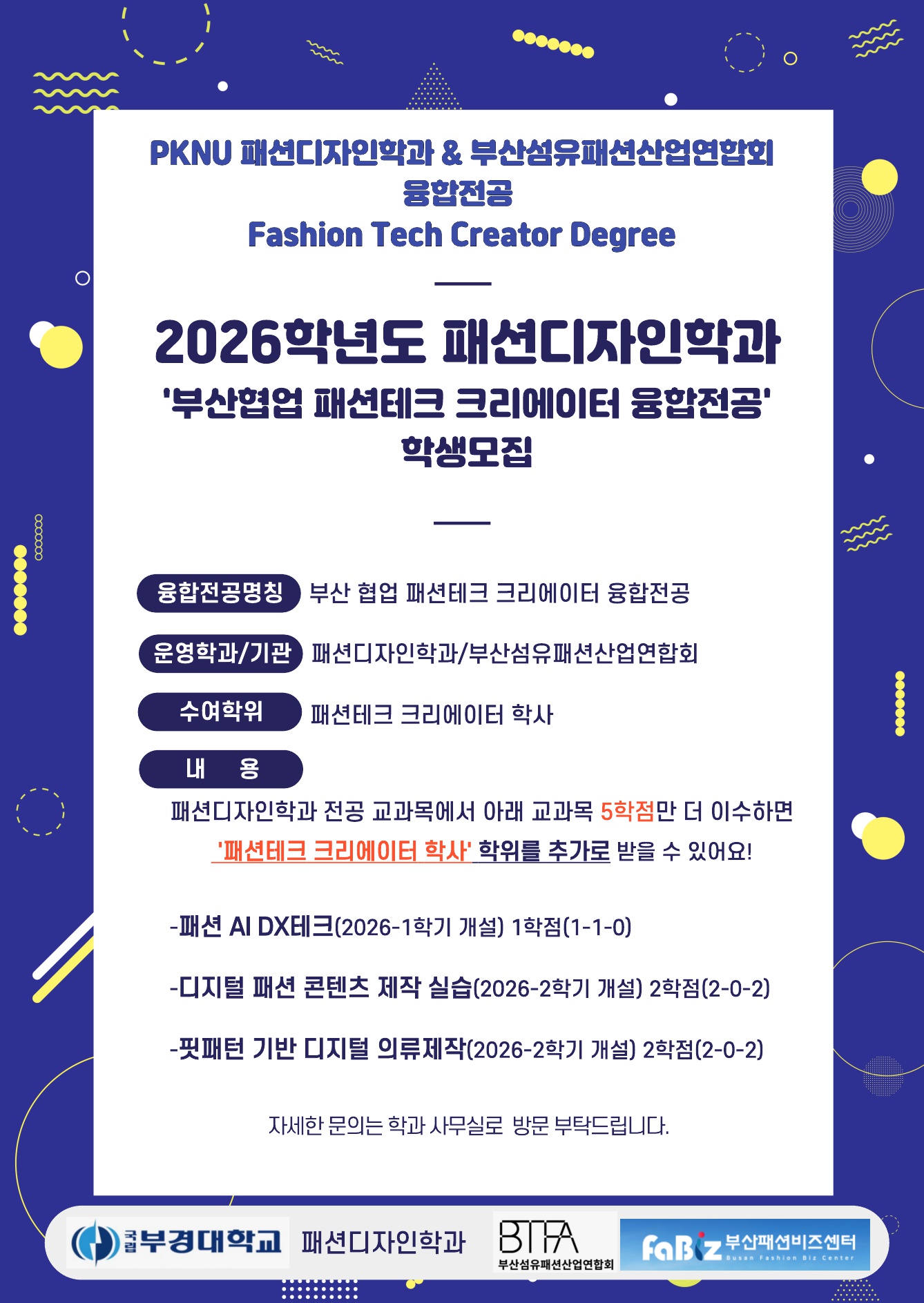 | [부산협업패션테크크리에이터융합전공, 마이크로전공 신청] 2026학년도 1학기 다전공 등 이수자 선발 안내 | |||
